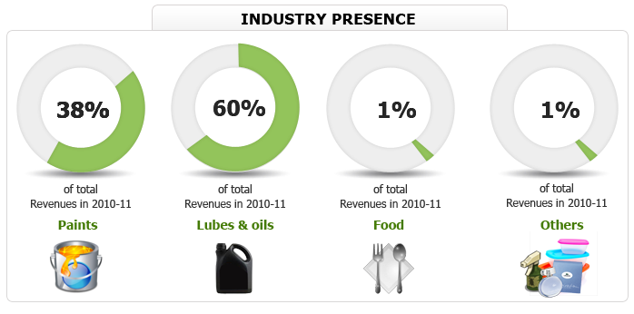 We cater to the Lubricants used in the Automotive segment and to Paints which is